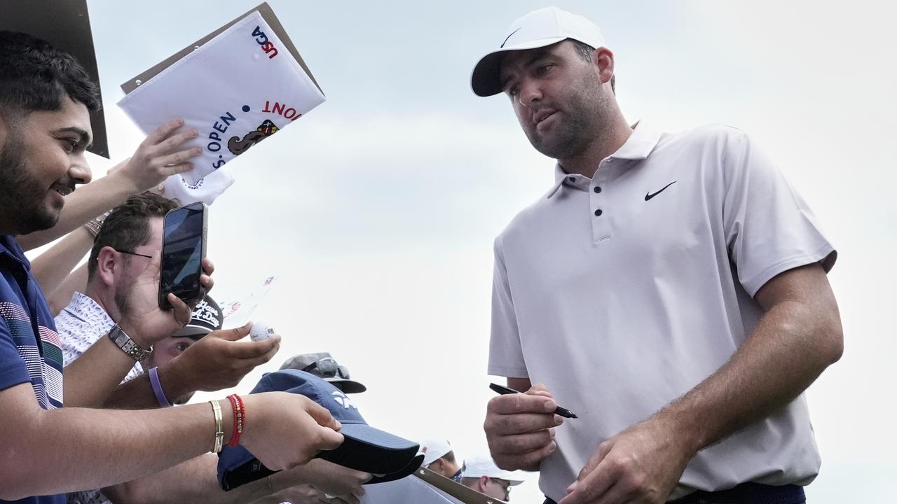 A relaxed world No.1 Scottie Scheffler signs autographs at Oakmont Country Club. | Photo: AP